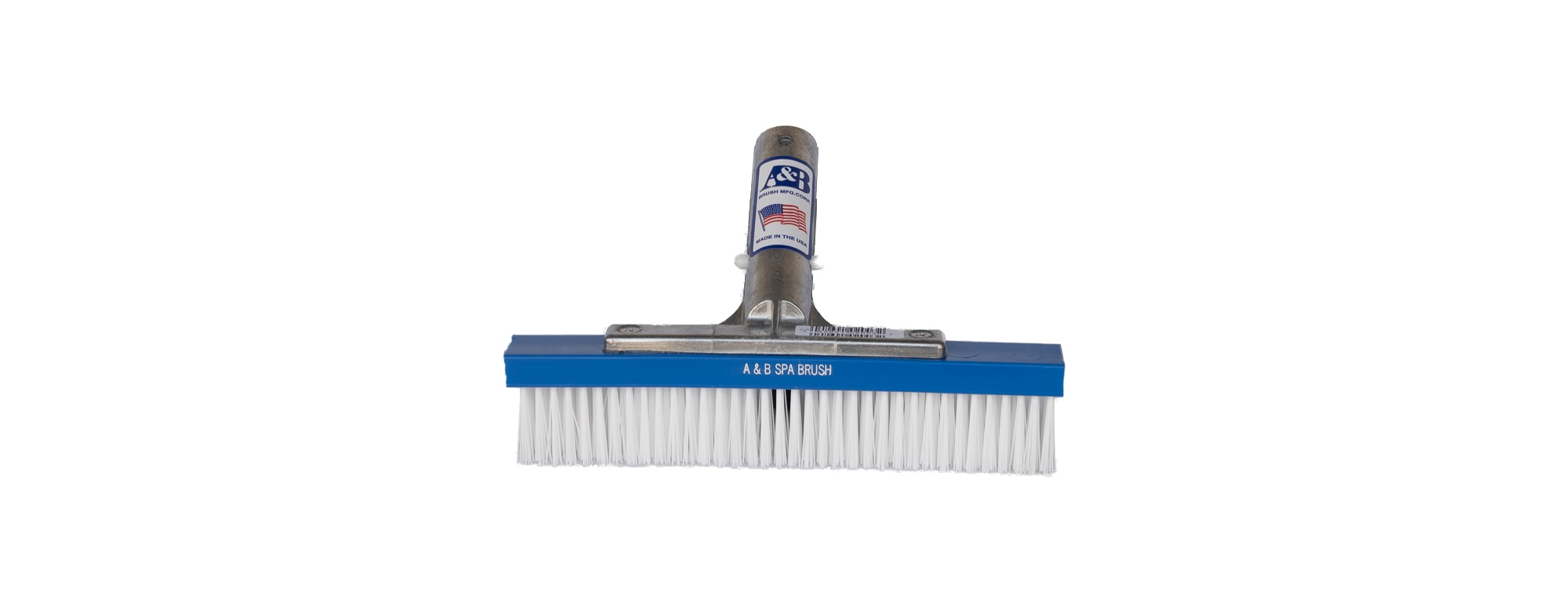 The 2003 is a compact spa brush built for the demands of professional service routes. White plastic bristle cleans spa surfaces gently and thoroughly without scratching. The aluminum Kwik-fit handle gives this budget brush the same quick-connect convenience as A&B’s premium lines.