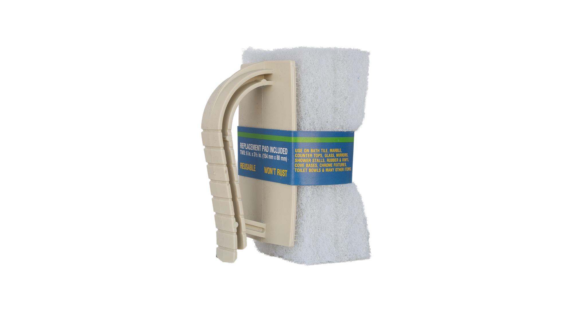 The compact Mr. Scrubber Jr. puts scrubbing power right in your hand. Comes with two light-duty white pads for gentle cleaning of tile lines and delicate surfaces.